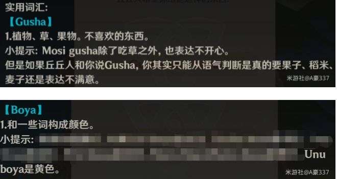 1、前往指定地点寻找愿意交流的丘丘人(悬崖第二层左侧那只)并提交gusha nun boya=黄色植物(甜甜花、树莓、蘑菇、小麦、土豆、金鱼草)