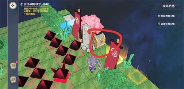 绯玉丸会自动往前走,跟上即可。红圈位置有一个宝箱可以拿掉。