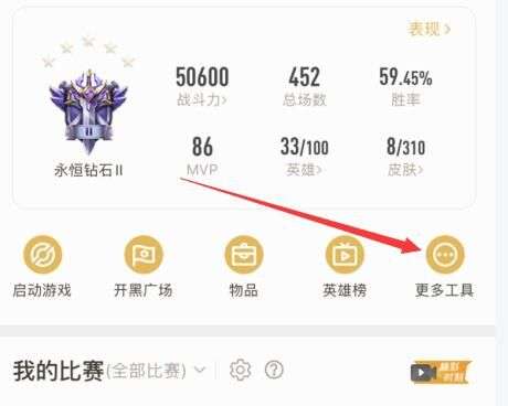 第二步、进入王者营地选择战绩——更多工具——拉到最下面能看见角色服务——角色工具