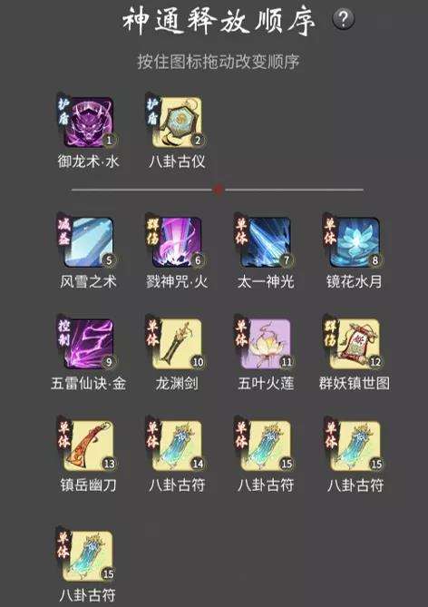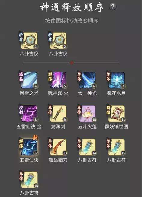 总体思路:起手群攻打灵兽顺便打在人身上,从而避免浪费群攻的多目标。如果起手群攻无法把对方灵兽清除,可延后控制神通,尽量避免把控制打在灵兽身上,其他输出神通法宝古宝一般情况下按照输出高低排序。