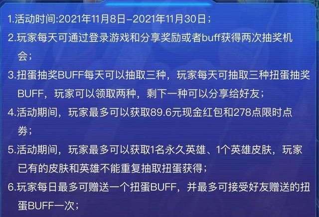 5、活动期间,玩家最多可以获取1名永久英雄、1个英雄皮肤,玩家已有的皮肤和英雄不能重复抽取扭蛋获得;