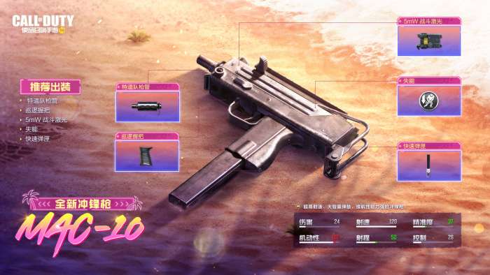首先是各位战士最喜爱的环节——全新武器配件加入战场,这次新内容中将会新增可控的大弹匣冲锋枪MAC-10,MAC-10在中近距离拥有较强的统治力,尤其在巷战较多的地图中更有着不俗的发挥。