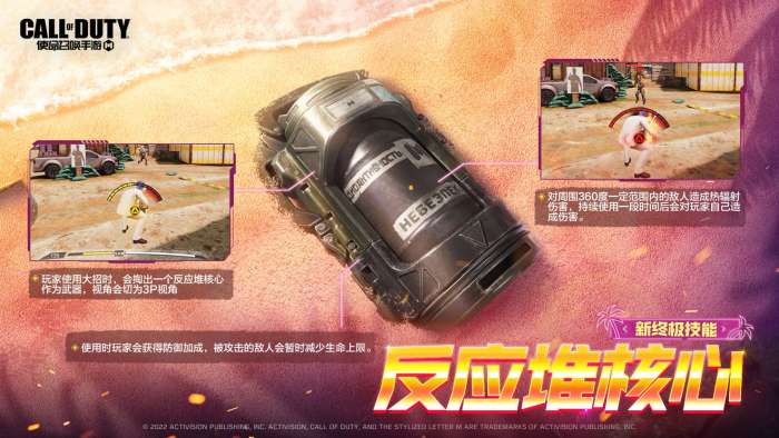 新终极技能:反应堆核心加入战场!战士们使用该技能时将会对附近一定范围内的敌人造成持续伤害,且被命中敌人的生命上限会暂时性的减少。在该技能使用期间还有防御加成,避免被敌方快速淘汰,但是要注意的是,持续使用一段时间后会对自身也造成伤害,战士们也要注意保护自己哦!