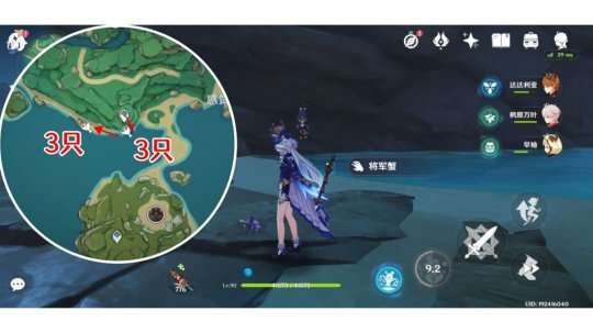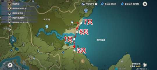 稻妻,甘金岛,7只(易惊扰怪物致使螃蟹逃逸)