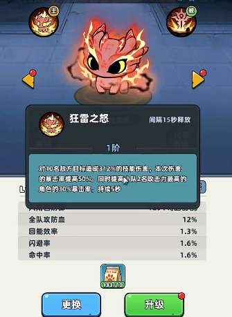 极光龙在主动技能当中可以对敌人造成群体的输出,之后这类伤害当中会有一些持续几个回合的能力,后续每十秒都会触发自己的被动,给全队的成员叠加伤害,虽然只有一层的效果可以进行触发,但是他在提升了自身星级之后,也可以叠加到最高三层,这里同时就可以带来30%的伤害加成了,所以如果大家想要去刷资源的话,那么在有了极光龙的搭配以后,效率上面会有更多的提升,当前想要获取极光龙的话,在宠物转盘里面抽取其实概率还是比较大的,当然他在强度上面其实跟尼伯雷根是不相上下的,尼伯雷根跟它的技能效果一样大部分都是给全局带来属性加成,而且还可以额外提供一些辅助效果,包括其中的怒气加速以及各种护盾都是尼波雷根可以造成的,所以如果大家手中有极光龙的话,也可以把它跟尼伯雷根还有这里的宙斯之鹰放在一起。