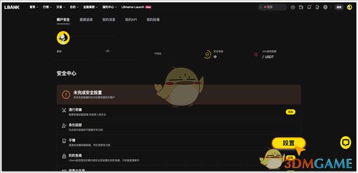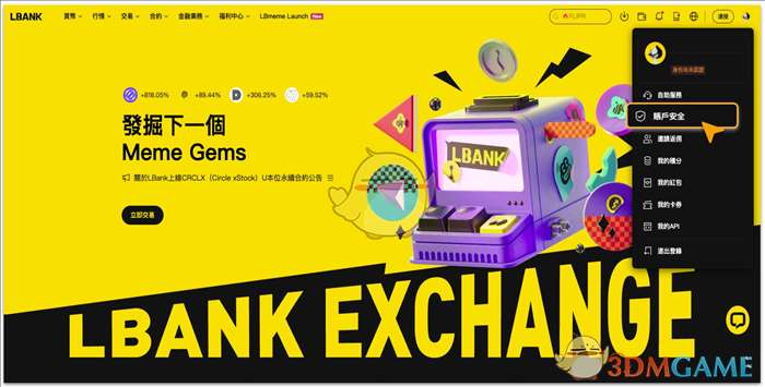 登录LBank 官网,点击右上角的个人资料图标,点击【账户安全】。