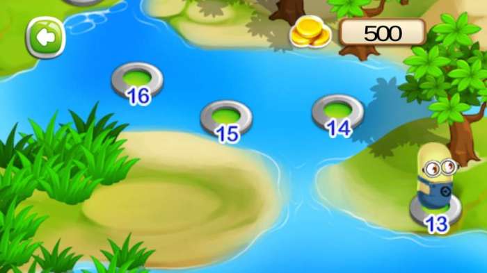 玩家在游戏中将会扮演呆萌角色,小黄人,跳跃重重困难逃离水面;