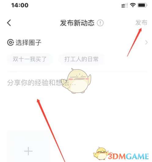 3、在空白处输入个人经验和想法,点击右上角【发布】即可完成