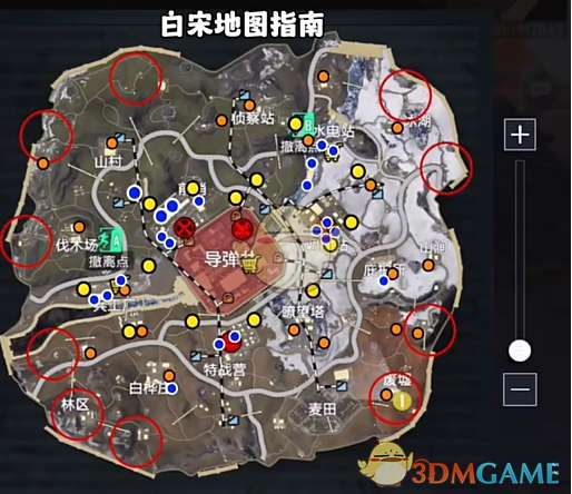 PS:下图红色圆圈对应的是出生点,黄色是油桶标记,橙色对应公文包,蓝色点位是文件柜~