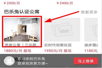 1、打开巴乐兔租房APP,选择自己喜欢的房型,点击进入查看详细信息。