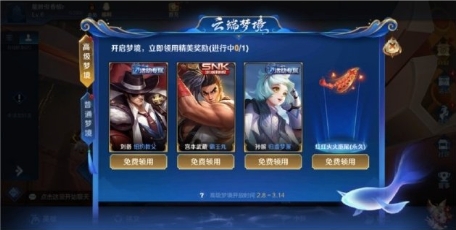 王者荣耀元宵节除了有甄姬和庄周的五岳主题新皮肤外,还有一大波福利等着大家,其中高级梦境兑换皮肤再次开启,这次筑梦成功不仅可以领孙斌小可爱的皮肤,还有宫本的SNK联动皮肤和刘备的伴生皮可供兑换。