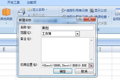 3、点击上方【公式】-【定义的名称】,在里面输入黄色。