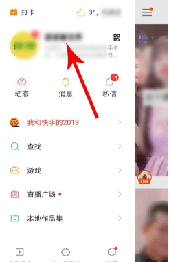 1、打开快手,进入页面之后,点击左上角的三条杠;