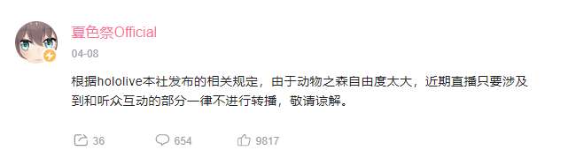 NS动森卡带的下架原因很简单,借用一下hololive运营公告里给出的说法就是“自由度太高”。