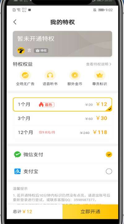 4、选择你要开通的月数并支付即可