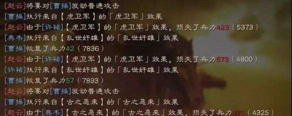 别看一个主动战法没有就觉得垃圾。可能你无法理解,但有一个事实你必须正视,往往一场战斗下来,没有一个主动战法的许褚造成的伤害比典韦的还要高。这样要归功于作战兵书里的胜战,仅此一回合的破阵效果带来的收益,远比你想象的还要高,还要可怕。