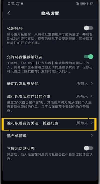 抖音设置关注列表不可见的方法教程