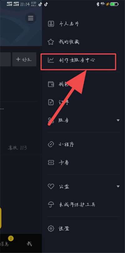 2.进入“个人中心界面”之后,点击上方的三横图标,点击“创作者服务中心”选项。