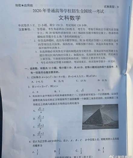 2020全国II卷高考文科数学真题答案是什么 高考文科数学标准答案分享[图文]