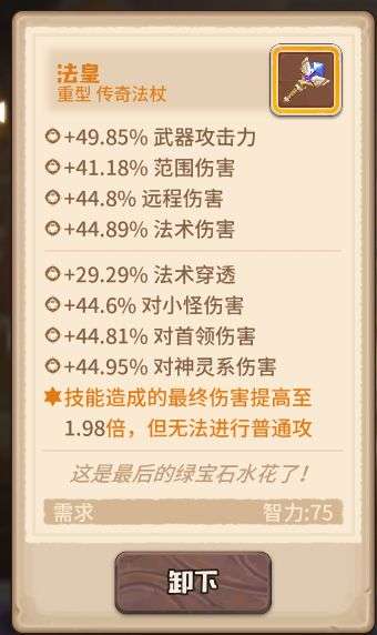 最后我们再来说说妮卡的装备,小编是推荐给妮卡装备一个法皇,如果没有的话可以退而次之选择一个弱一点的,之后再慢慢通过绿重型法杖的进行合成或购买。