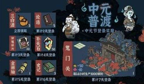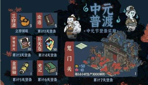 9月2日13:00起,累计登陆即可领取中元节新建筑【鬼门关】、特殊居民【钟馗】。