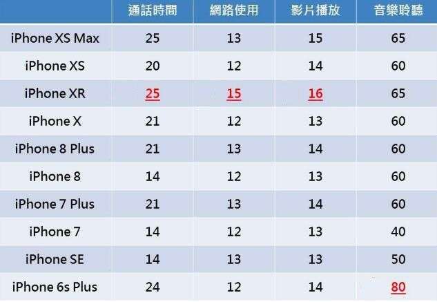 当然,从另一个意义上来说,iPhone XR在电池性能上无疑是所有前代手机中最好的旗舰手机,在通讯、网络、电影等方面排名第一。但在播放音乐时,iPhone 6s Plus在80小时内超过了iPhone XR的65小时,夺冠。