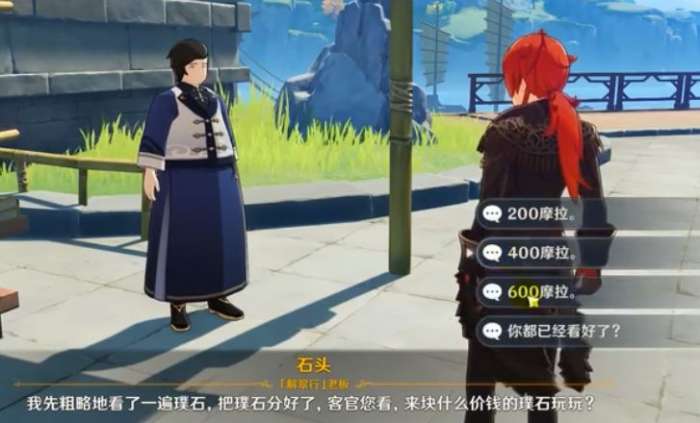 在游戏中跟着任务的提示玩家们需要找到赌石店的老板,然后就是玩家们个人的运气时间了,找到赌石店的老板之后对话,然后就开启了赌石模式了,