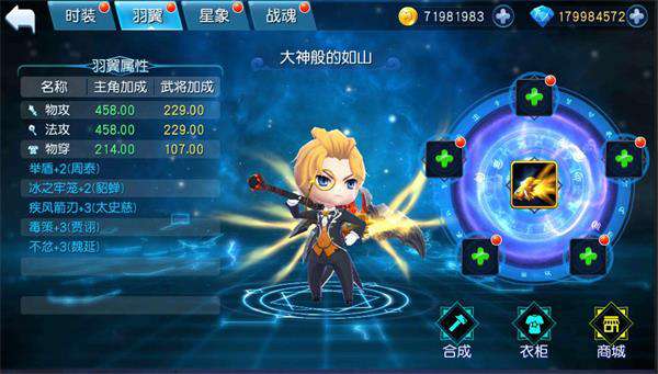 在春暖花开的四月,在主城洋溢着欢乐音乐的大街小巷,主公可能会看到其他有着华丽羽翼的“天使”。哈利路亚,在Q萌的《不朽三国》,怎么能没有狂拽炫丽叼炸天的羽翼呢?一副华丽的羽翼不仅可以衬托出主公和麾下武将的威武雄壮之姿,更会增幅其攻击属性和技能等级。如果主公不满意时装和羽翼的现有的特效,还可以自己动手精炼属性,使其精炼出自己所喜爱的特效属性。同时,主公们可以拥有多套的时装和羽翼,每套属性将会自动进行叠加,大幅度提升主公和麾下的属性和能力。有没有感觉这个设定简直棒极了?那种不会因为身上只显示一套衣服,就失去其他时装或羽翼的属性,让主公彻底体验一把“天性解放”的快感!