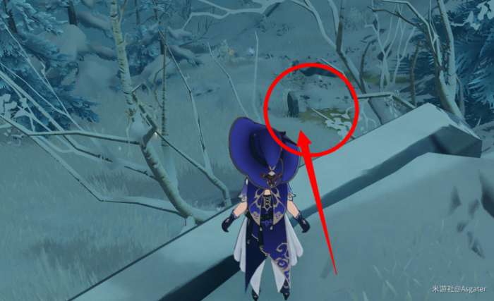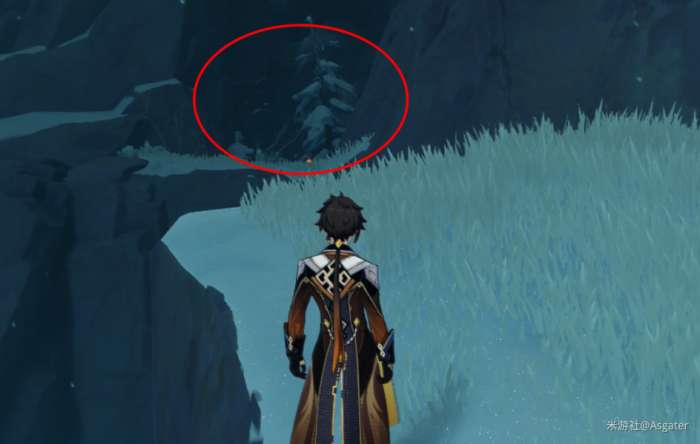 位于大地图眠龙谷的下方,从一处传送锚点很好找到。在标记处的一处高台上,下附一张实景图。