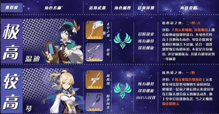 极高:不可替代的,属性高于其他的角色(并不全是五星,注意)