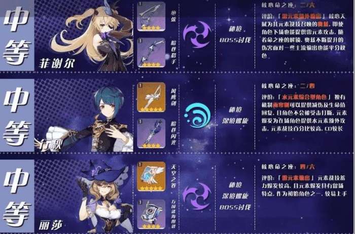 最后是B级角色,本期没有C级角色,B级角色中大部分也在前面的级别中出现过,唯一的新角色就是丽莎,她被评为B级副C,是本期榜单中排名垫底的角色,而且居然副C还需要四命。