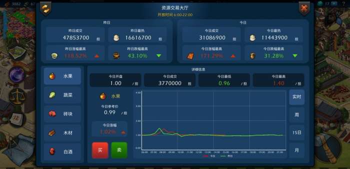根据每天物资价格的波动,可以挑准时机购货和出货,下面我们看看今天的几个主要物资的波动;