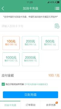 2.目前支持中石化加油卡充值,中石油加油卡充值正在开发;