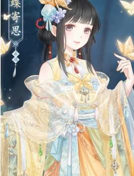 【翩蝶寄思】会正常姿势与特殊姿势。特殊姿势外套“流纱锦绣”, 精美摆件“橙色纸蝶”。海报展示妆容为“纯洁天鹅”。