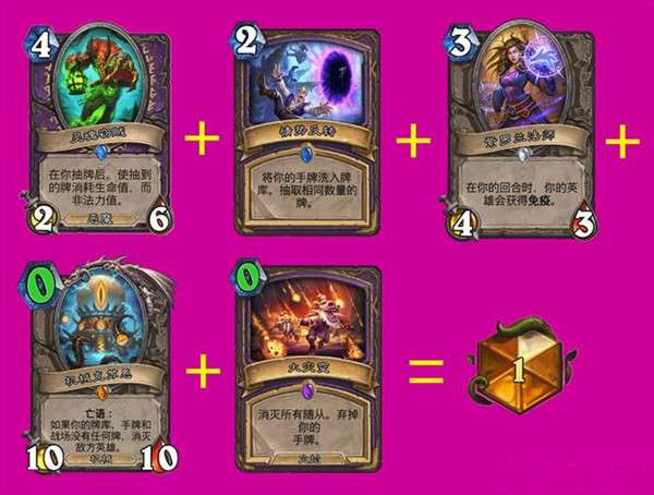 因为灵魂窃贼这张卡可以用血来代替费用的特殊效果,被玩家们开发出了搭配紫罗兰法师免疫和情势反转补牌的特殊组合技。