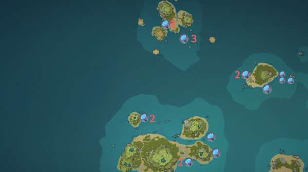 由于部分点位海灵芝群位置相近,因此以数字标记部分点位海灵芝数量;仅有图标而未标记数字的海灵芝点位默认数量为1。