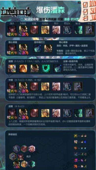 这两套阵容的思路和光游侠是一样的,由于韦鲁斯技能机制,可以给队友附加伤害,潘森吃到韦鲁斯的剑雨,肉装潘森开启技能后输出爆炸