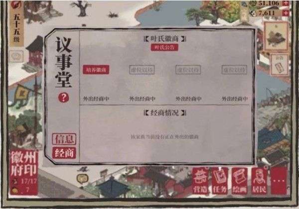 在「议事堂」内可以进行徽商经营玩法。