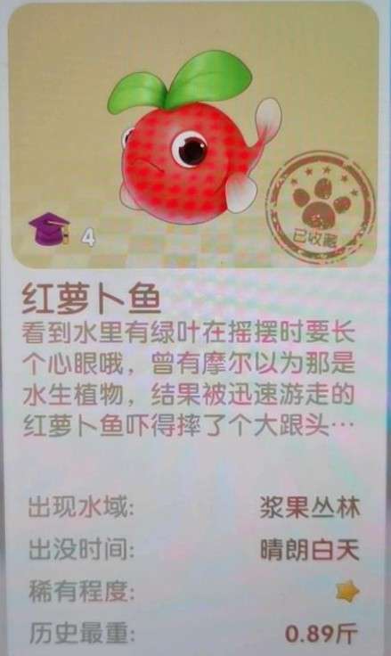 萝卜鱼,这个也是不限时间天气,在浆果丛林就可以获得。
