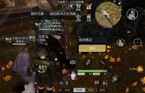 在这里可以看到一个拾荒者中年人,然后可以询问情况,可以触发这个剧情。需要玩家做一个水煮蛋给他,这个很简单,上交即可。