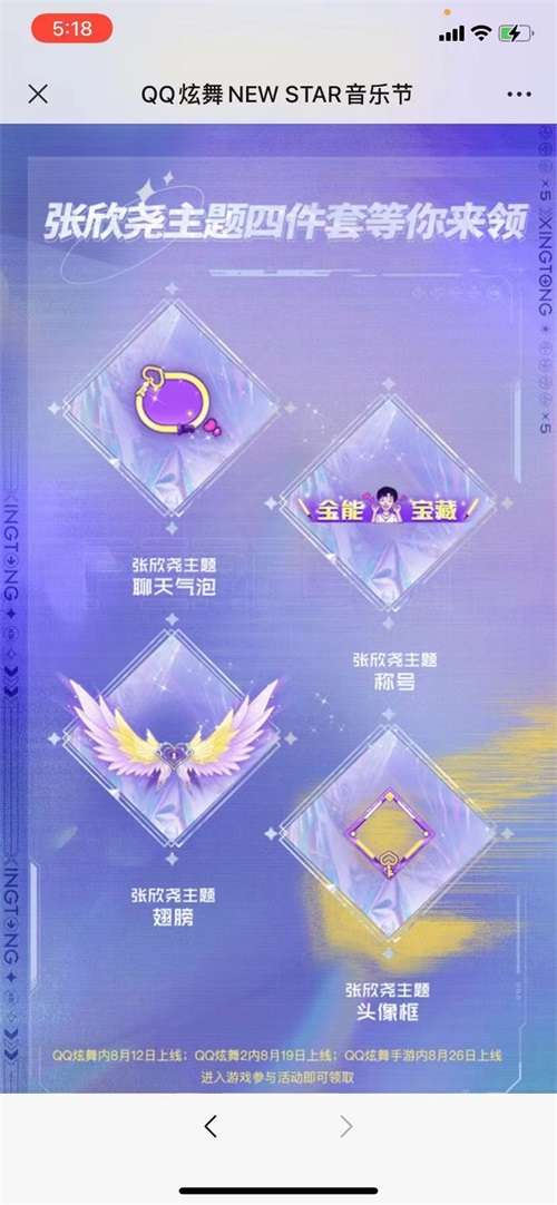 虽然本次音乐节已经接近尾声,但狂欢还没有结束。玩家们还能在游戏中体验到NEWSTAR的音乐及舞蹈魅力。8月12日开始,本次音乐节主题曲《NEWSTAR》及同款舞步在QQ炫舞和QQ炫舞手游中上线,8月19日起在在QQ炫舞2中上线。各位舞者们可以进入游戏,体验张欣尧的同款舞蹈,和伙伴们一起PK舞技。同时,张欣尧主题四件套也陆续在QQ炫舞系列游戏内上线,玩家们进入游戏参与活动即可免费获取。(https://x5m.qq.com/act/6180/a20210709shuqi/index.html?)