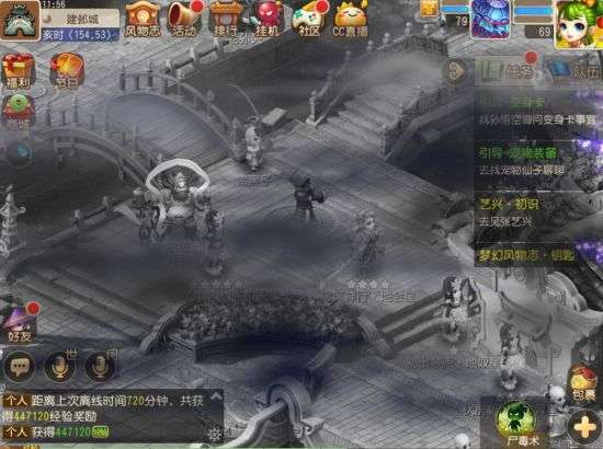 在活动期间,玩家还可以根据阵营体验鬼门开玩法。在这一玩法中,玩家可以根据自己在阵营中的等级,使用不同技能,消除对方同一造型的NPC。但是连续三回合未能消除的话,战斗就会结束。