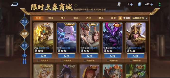 限时点券跟消费点券是1比1的,也就是说是可以当做点券使用的,在购买的时候是会优先扣除限时点券的。这次更新之后也是上线了猴子和安其拉的新皮肤,一个售价为560点券一个售价710点券。同时还有一个充值返利的活动,是有返利点券的。