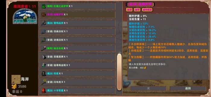 开局一路直到魔国才拿到不合群独狼,魔国前都是没有独狼的单刷,比较累,正常带独狼最多两回合,没有的情况下需要四五回合。自动格挡也没有部位上,技能词条只有智力强酸、火焰、冰泉以及快速强酸、冰泉。