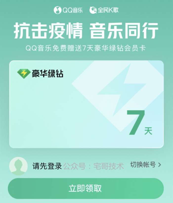 qq音乐抗击疫情7天绿钻会员领取地址分享