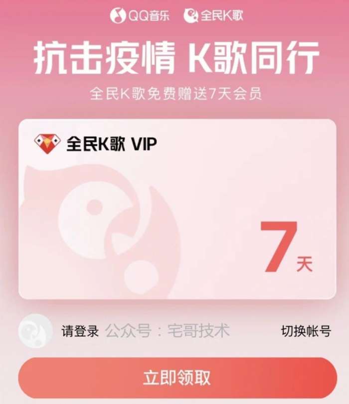 腾讯QQ音乐宣布,抗击疫情,音乐同行,向所有人免费赠送豪华绿钻会员卡7天,无地区限制,所有人都可领取,限量100万份,单帐号只限领取一次。除QQ音乐外,全民K歌也宣布赠送100万份7天VIP会员体验卡,送完即止,单帐号只限领取一次。