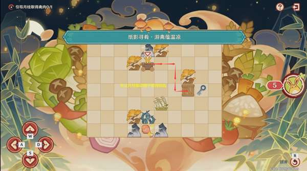 第一步:先让月桂推动箱子取得钥匙