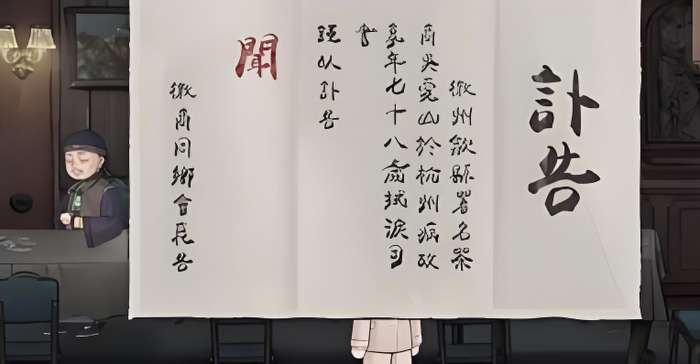 这位角色出现的位置为游戏第四章,在进入这一章后见到她的时候需要在有关她的疑团中选择讣告,完成后接下来需要完成对史实志的解锁,在完成对其的解锁后可以看到殷柔的尸体,然后需要对其尸体和周围的环境进行调查。