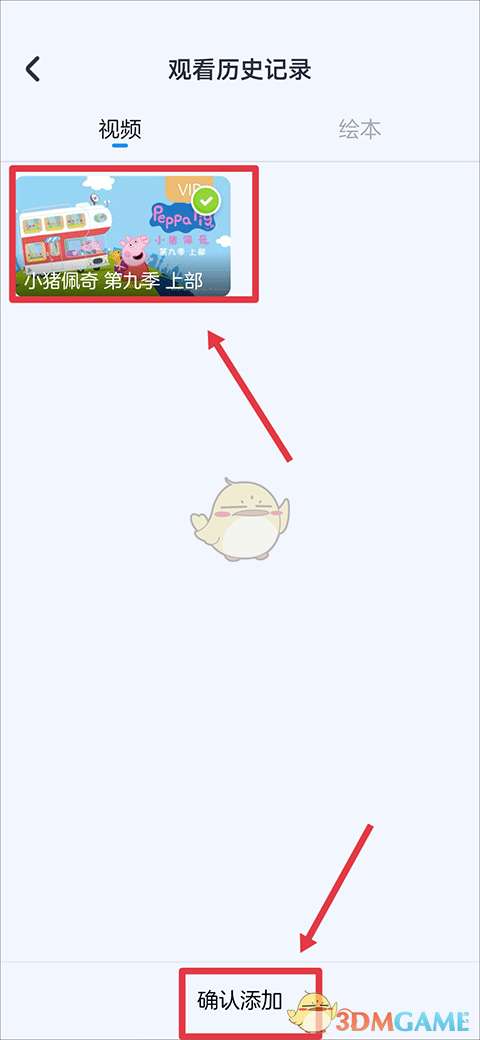 3、选中要添加的视频或绘本后,点击下方的确认添加即可设置成功。
