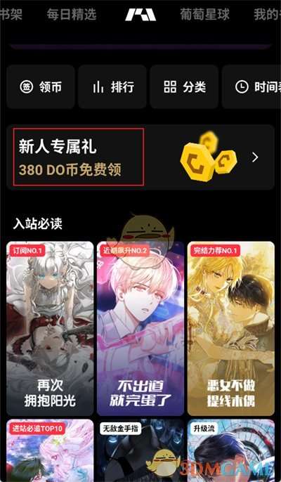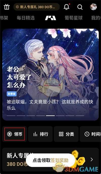 1、首先打开podo漫画,进入软件后点击界面上的【领币】选项;
